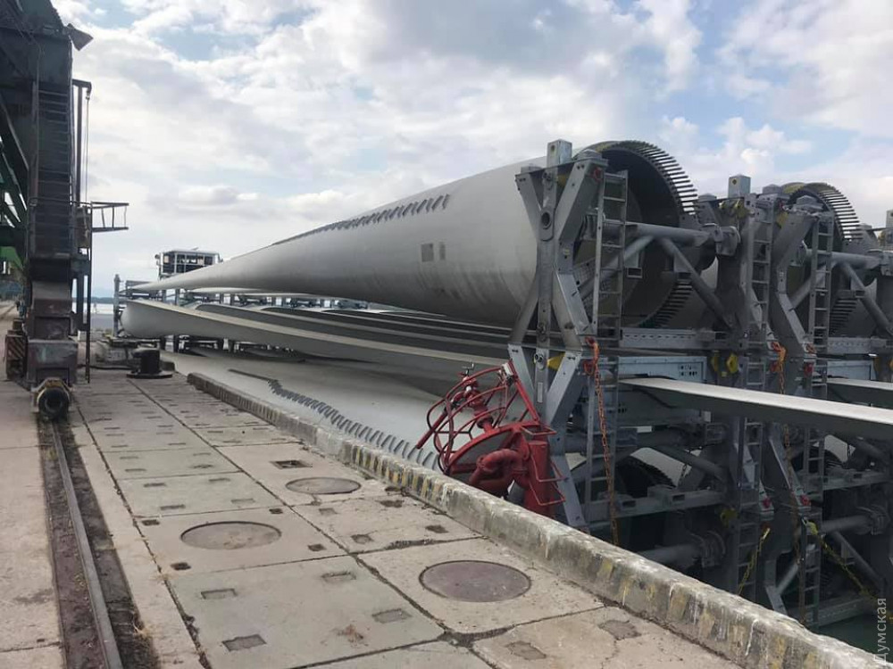 Как сообщили в Администрации морских портов Украины, груз, состоящий из 15 огромных лопастей, доставило в гавань судно JUMBO III под флагом Болгарии.