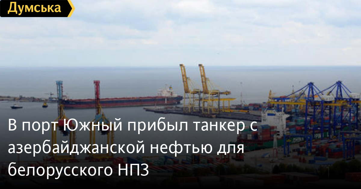 Вечером 29 июня в порт Южный под Одессой прибыл танкер с 85 тыс. тонн нефти из Азербдайджана, которую в дальнейшем переправят на Мозырский нефтеперерабатывающий завод в Беларуси.