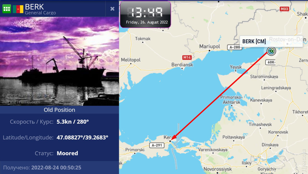 Українські правоохоронці не вжили жодних дій щодо суховантажу BERK, який у серпні 2022 року відвідував тимчасово окуповану Керч, а з 10 до 12 лютого стояв у порту Ізмаїла.