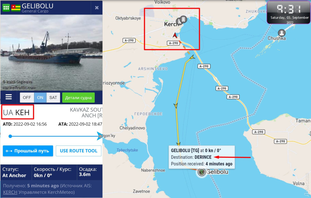 Вона з колегами вже давно стежить за переміщеннями цього судна під прапором Камеруну. 24 серпня борт здійснив рейс із російського порту Азов до тимчасово окупованої Керчі, де його завантажили залізним купоросом із «Кримського титану».