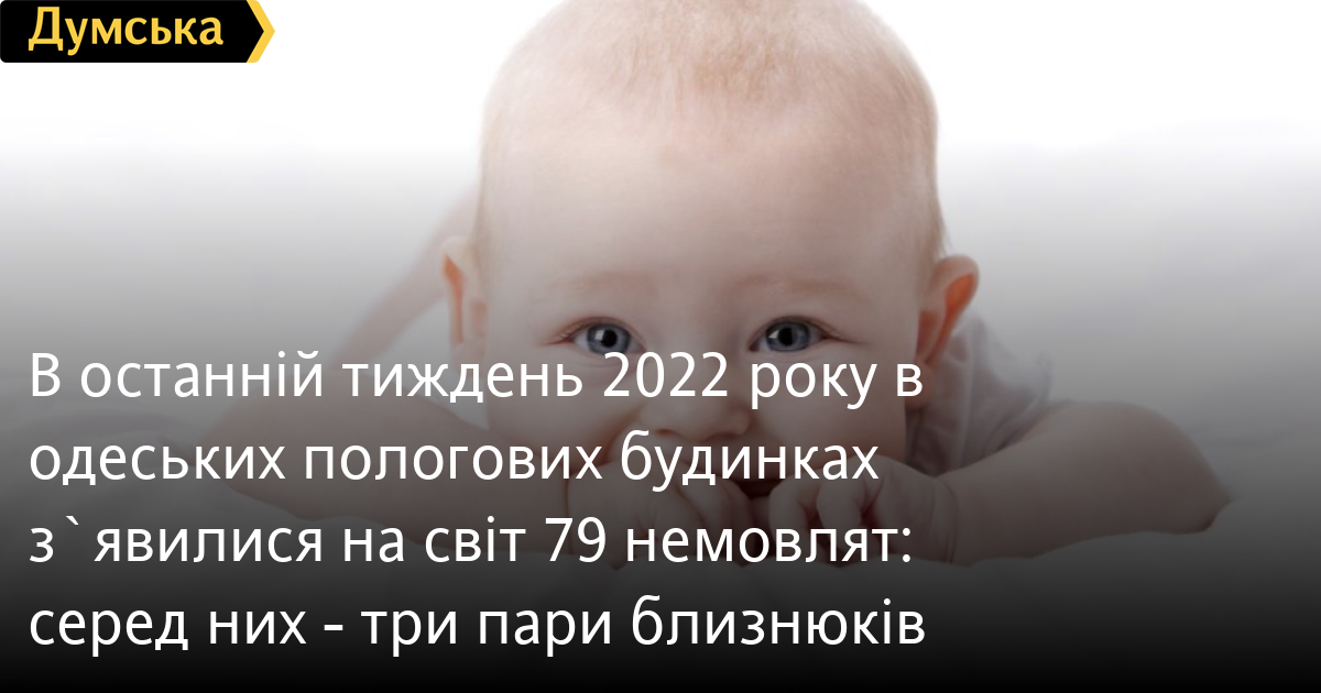 В останній тиждень 2022 року в одеських пологових будинках з`явилися на світ 79 немовлят: серед них - три пари близнюків79 маленьких українців з'явилися на світ в одеських пологових будинках за останній тиждень 2022 року. Серед них - три пари близнюків, повідомили в муніципальному департаменті охорони здоров'я. Хлопчиків і дівчаток народилося приблизно порівну: 40 проти 39 відповідно. Найбільше пологів прийняли в пологовому будинку 7. Там побачили світ 28 немовлят. Усі пологові будинки міста забезпечені електроенергією, водою і теплом. Заклади надають медичну допомогу в повному обсязі. СМЕРТЬ РОСІЙСЬКИМ ОКУПАНТАМ! Помітили помилку? Виділяйте слова з помилкою та натискайте control-enter |