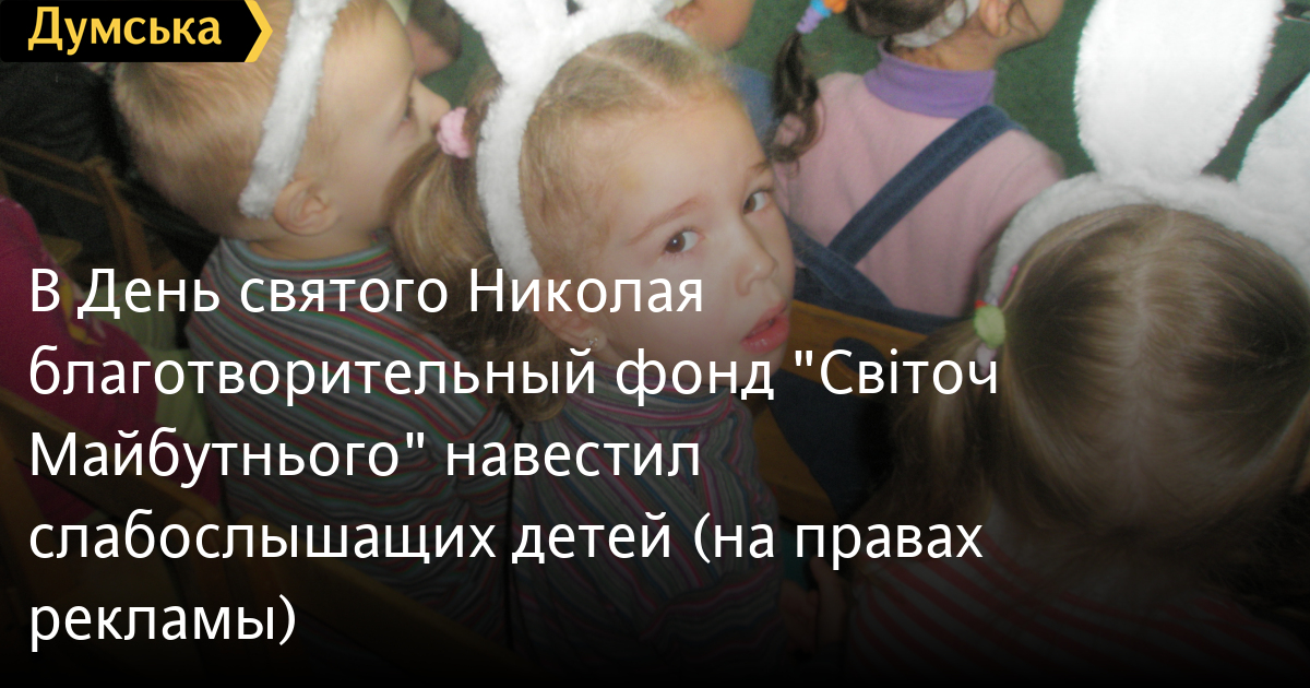 В День святого Николая благотворительный фонд «Світоч Майбутнього» навестил слабослышащих детей (на правах рекламы)В День святого Николая в детском саду №113 для детей с пониженным слухом прошел утренник, на котором присутствовали гости – представители благотворительного фонда «Світоч Майбутнього». Воспитанники садика №113 еще совсем крохи, но уже знают, что такое испытания. Некоторые ребята слышат речь частично, некоторые – не слышат совсем. А ведь общение – одна из важнейших потребностей человека. Поэтому ребята так радуются возможности пообщаться с гостями мероприятия – улыбками, жестами. День святого Николая – праздник, которого ждут все дети. Николай Чудотворец исполняет желания и совершает настоящие чудеса. Активисты фонда «Світоч Майбутнього» решили побыть в роли волшебников и привезли ребятам подарки. С приобретением подарков помог первый украинский банк ПУМБ, руководство которого прониклось проблемами ребят и решило внести свой вклад в это волшебство. Помимо этого, в садике были установлены окна, обещанные Президентом благотворительного фонда Сергеем Перегудовым на мероприятии, приуроченном ко Дню инвалида. Помогла Городская служба остекления, которая на бесплатной основе согласилась помочь и заменить три старых окна на новые, современные, чтобы обеспечить ребят теплом и уютом. «Будем надеяться, что чудеса в жизни этих ребят будут случаться не только раз в год 19 декабря, а на много чаще. Что всегда будут находиться неравнодушные люди, готовые прийти на помощь, готовые проявить участие и не остаться в стороне от чужих проблем. Ведь чужих детей не бывает», — говорят активисты. СМЕРТЬ РОССИЙСКИМ ОККУПАНТАМ! Заметили ошибку? Выделяйте слова с ошибкой и нажимайте control-enter |