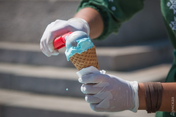 После примерки всем желающим журналистам раздали мороженое в национальных цветах