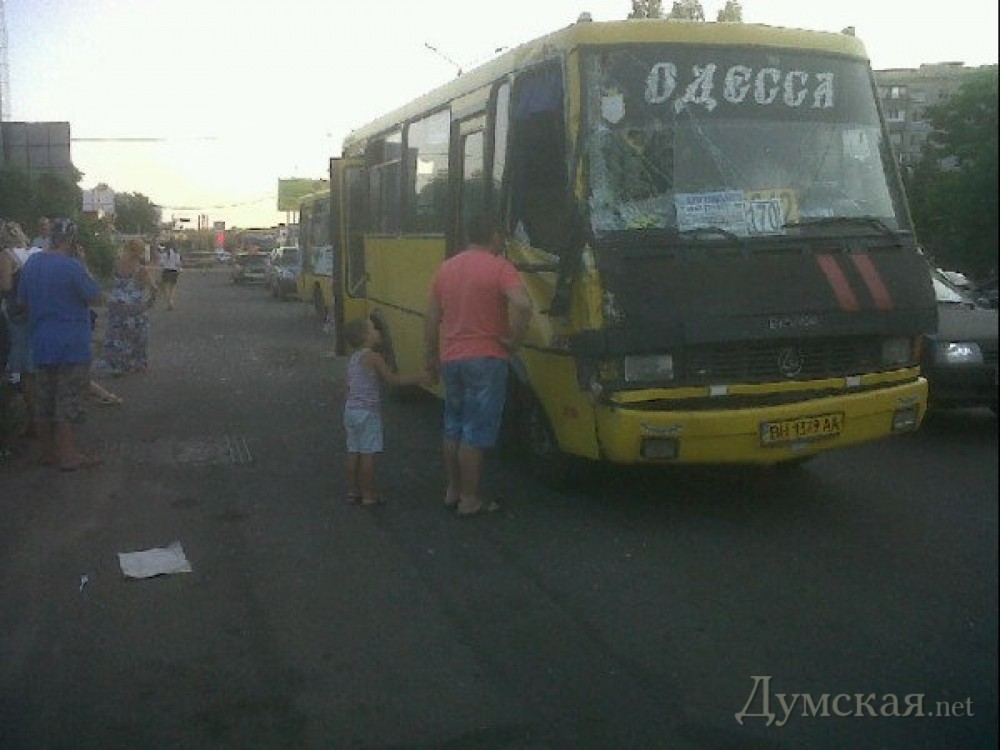 Авария с участием пассажирского автобуса и маршрутного такси произошла вечером 8 июля в поселке Крыжановка. Как сообщают очевидцы, водитель маршрутки не выдержал безопасную дистанцию и въехал в стоящий впереди автобус с такой силой, что у маршрутки вылетели стекла, а некоторые пассажиры получили травмы. Кроме того, из-за аварии образовался масштабный затор. Погибших нет. Помітили помилку? Виділяйте слова з помилкою та натискайте control-enter |