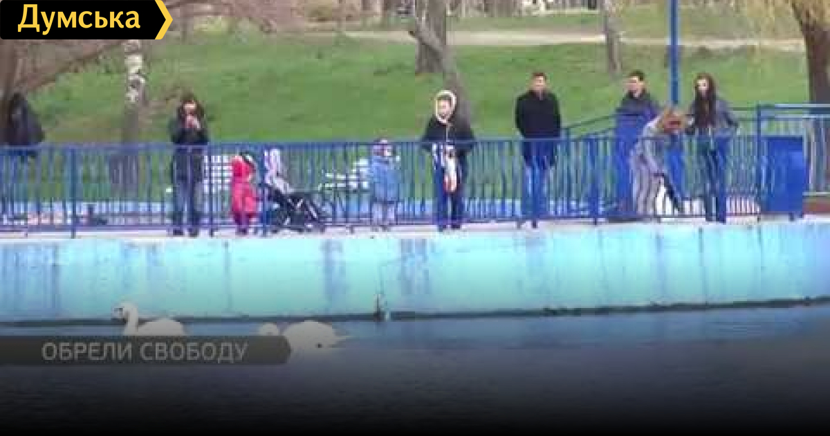 В пруд парка Победы выпустили двух белоснежных лебедей. Веселую компанию благородным птицам составили утки и черепахи. Как пернатые обрели свободу, наблюдала Мишель Арманд.