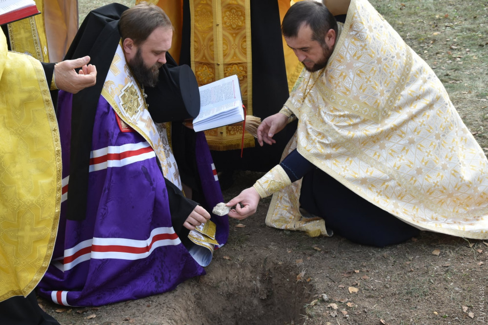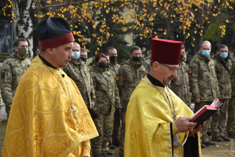 В пункте постоянной дислокации 28-й отдельной мехбригады имени Рыцарей Зимнего похода, расположенном в пгт Черноморское под Одессой, состоялась церемония освящения и заложения первых камней в фундамент храма Православной церкви Украины.