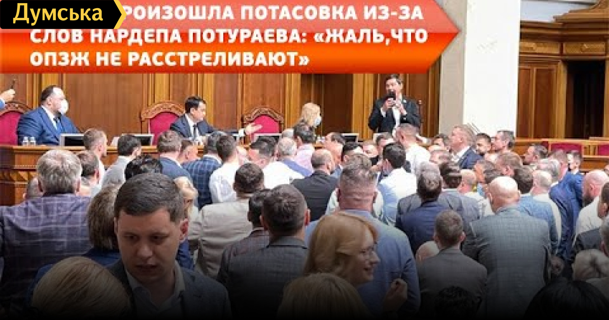 Столкновение произошло во время рассмотрения законопроекта о реформе Национального совета по вопросам телевидения и радиовещания. Выступая, Потураев заявил, что «жалеет, что ОПЗЖ не расстреливают, а придется уничтожать их политически».