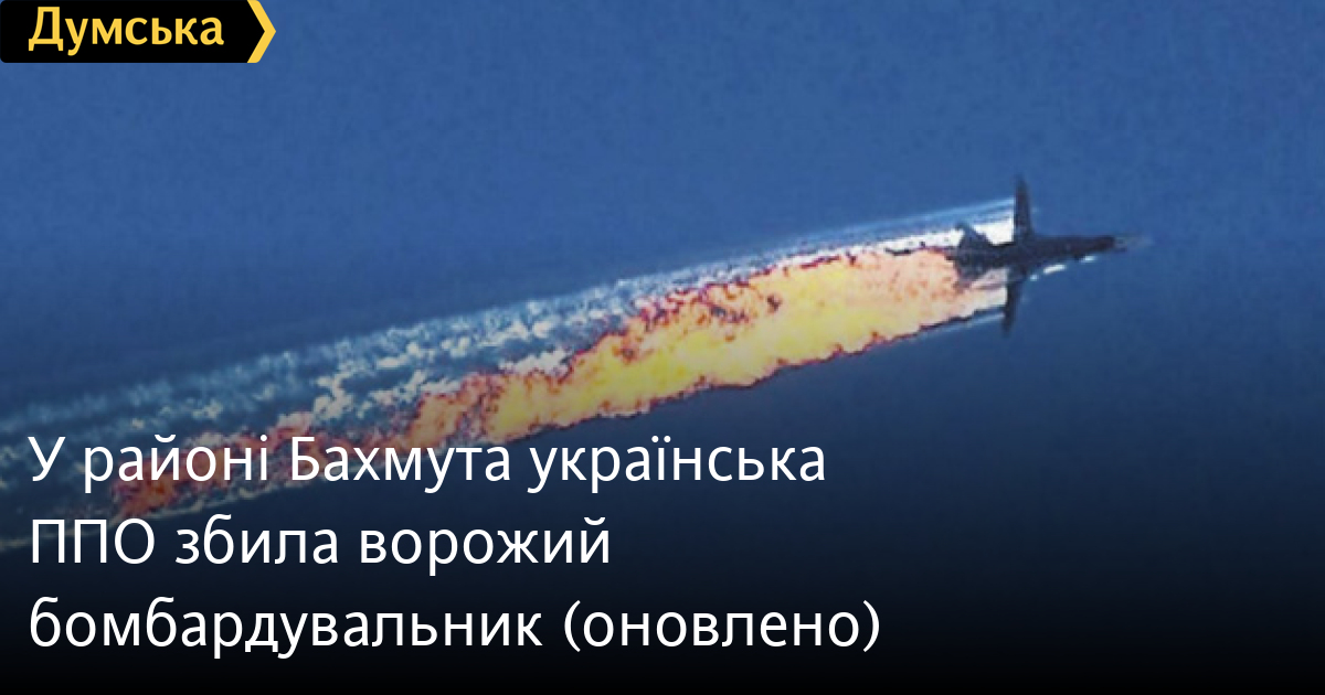 ППО Сил оборони України збила ворожий фронтовий бомбардувальник Су-24М у районі Бахмута.