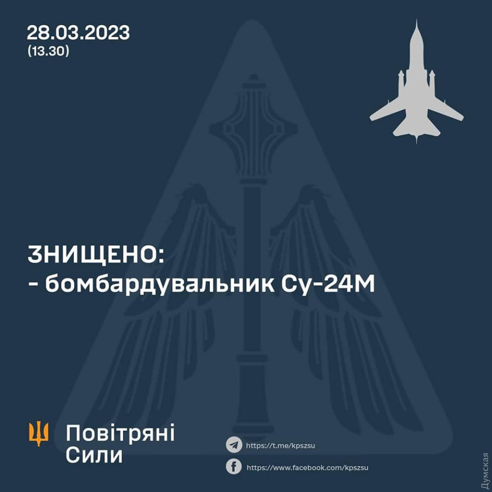 ОНОВЛЕНО О 12:10. Повітряні сили уточнили час знищення ворожого літака — його збили 29 березня о 1:30.