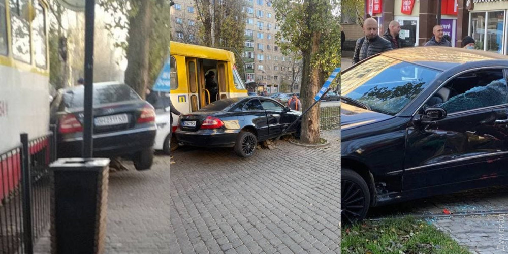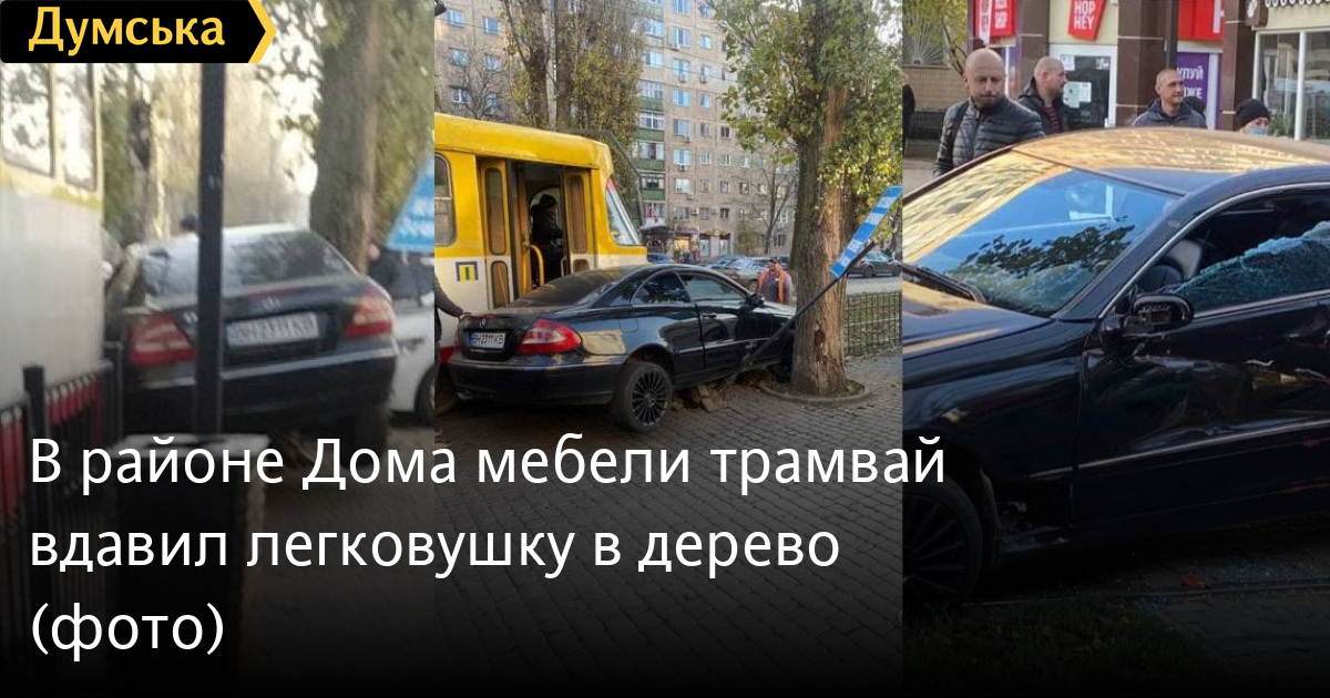 Легковой Mercedes оказался зажатым между вагоном 10-го трамвая и деревом у магазина «АТБ» на Ицхака Рабина в районе площади Деревянко.
