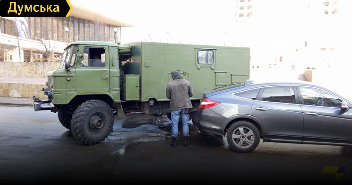 На первой фотке — злой водитель Хонды обсцыкает бензобак ГАЗ-66.