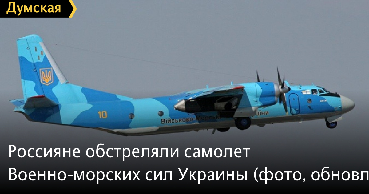 Самолет Военно-морских сил Украины Ан-26 был обстрелян сегодня в 10:20 над Одесским газовым месторождением в Черном море.
