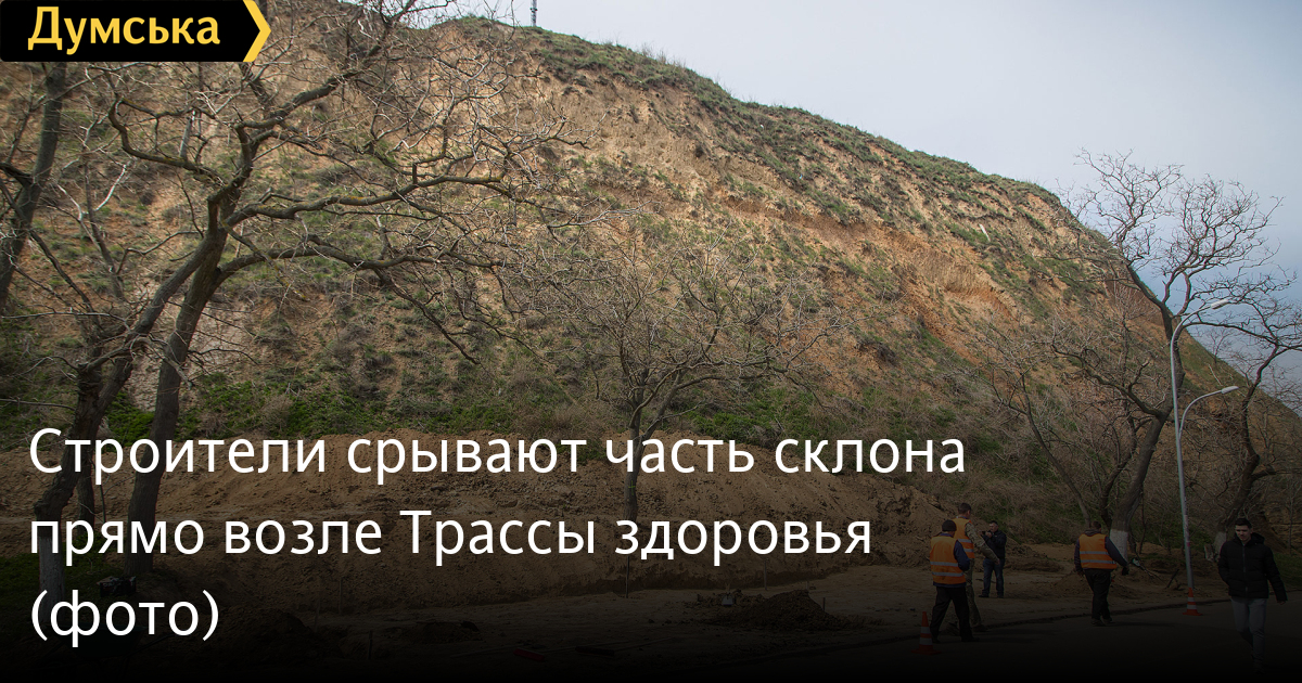 Как передает корреспондент «Думской», несколько дней назад строители начали работы на склонах за Трассой здоровья, прямо под скалой. Они срезали плодородный слой почвы и готовят площадку под фундамент. Отметим, что именно в этом месте после сильных дождей ежегодно происходит смыв грунта со скалы.