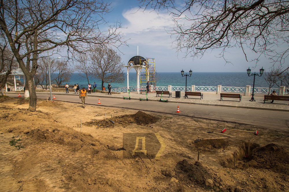 Изначально, ничего особенного инвестор не планировал. На представленных эскизах территорию возле пляжа планировали облагородить плиткой, высадить зеленые насаждения и укрепить подпорную стенку.