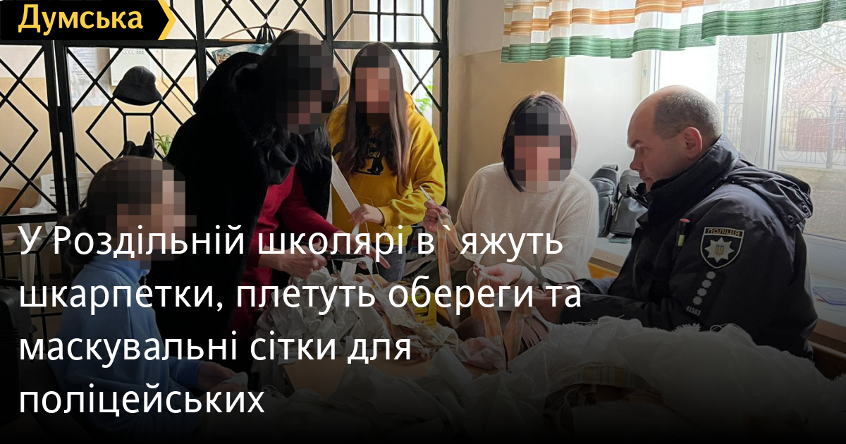 «Українці — незламна нація. З початком повномасштабного вторгнення російських військ на територію України навіть діти не лишилися осторонь спільної боротьби та допомагають наближати нашу перемогу. У вільний від уроків час школярі за допомогою вчителів працюють, щоб підтримати захисників, а ми передаємо їхні вироби на передню лінію фронту. Усі їхні речі заряджені дитячою енергетикою, любов'ю і теплом», — розповідає начальник Роздільнянського районного відділу поліції В'ячеслав Мішеченко.