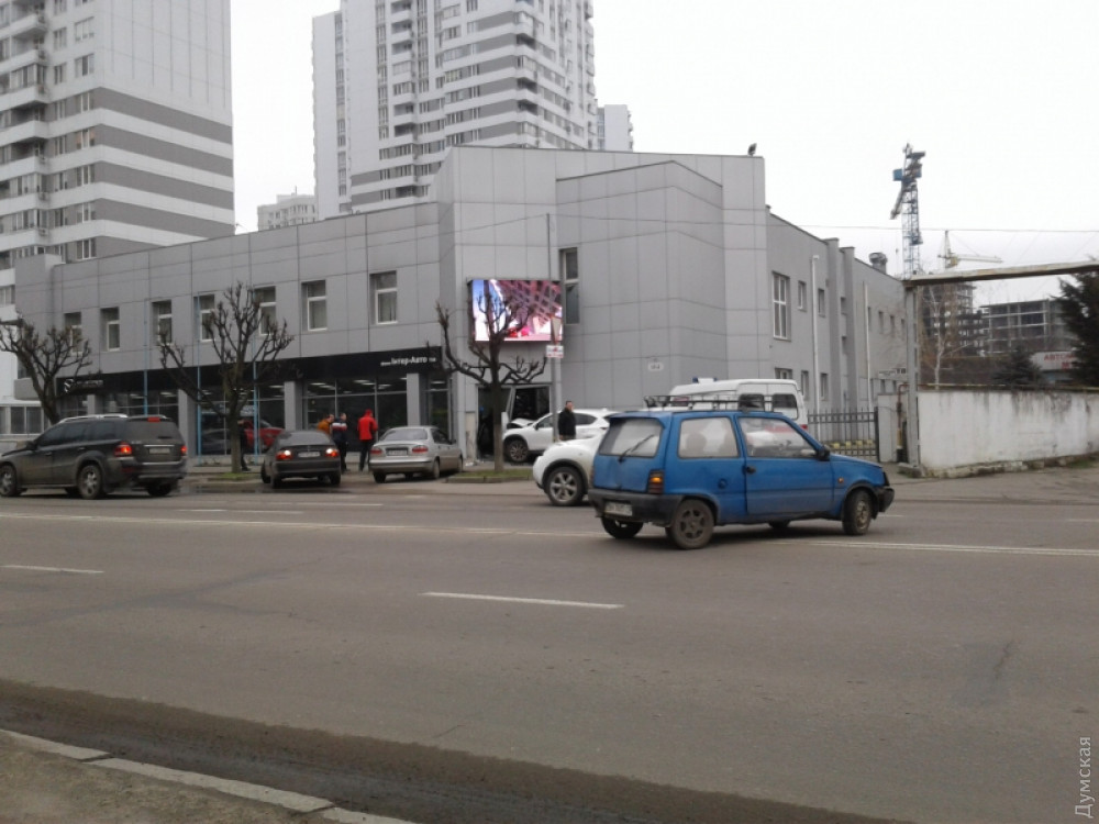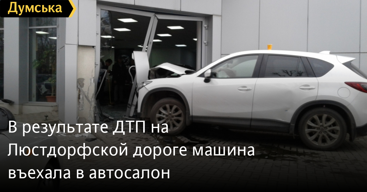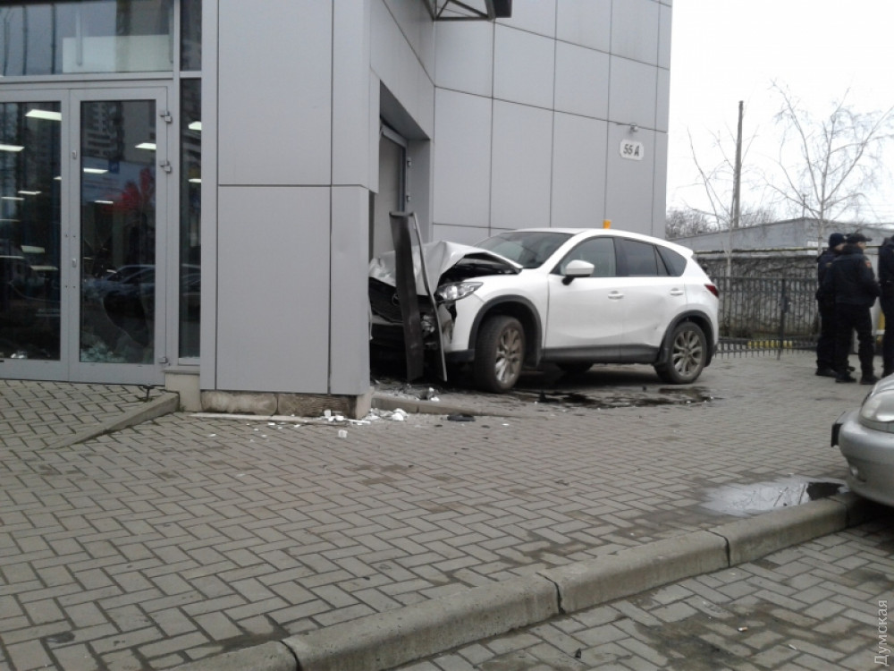 Как сообщили в патрульной полиции, в результате столкновения один из автомобилей въехал в помещение автосалона через входную дверь.