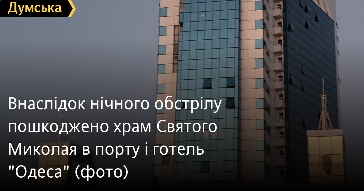 Храм Святого Миколая, готель «Одеса», будівлю ресторану Di mare та інші об'єкти пошкоджено внаслідок нічного обстрілу міста.