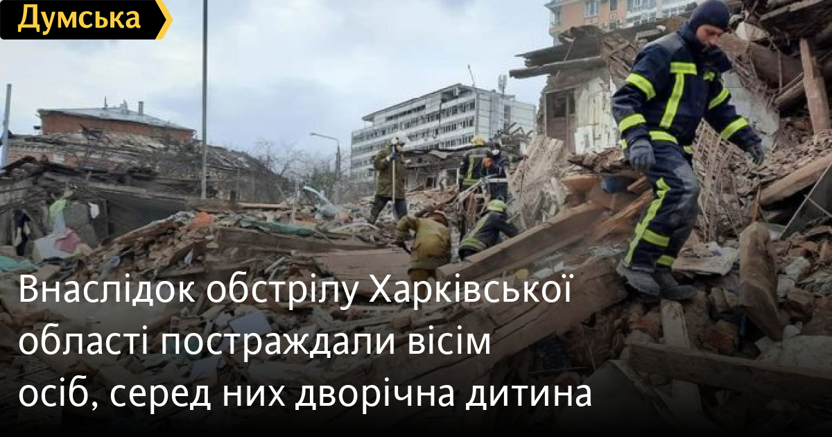 Вісім людей отримали поранення внаслідок обстрілу російськими окупантами Харківської області.