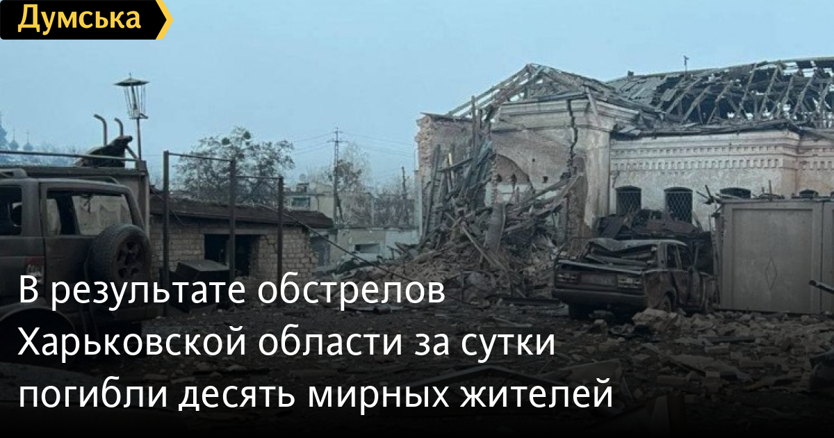 10 мирных жителей, среди которых один ребенок, погибли в результате обстрелов российскими оккупантами населенных пунктов Харьковской области. Также 11 человек получили ранения.