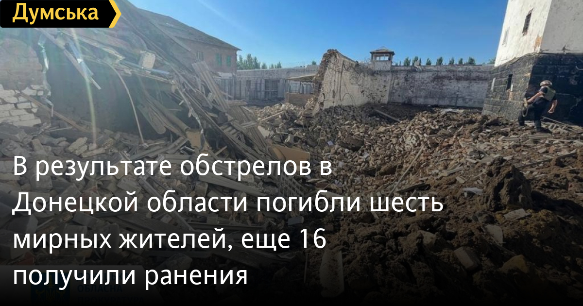 7-9 июня в Донецкой области в результате вражеских обстрелов погибли шесть мирных жителей и шестнадцать получили ранения. Прокуратура открыла уголовные производства.