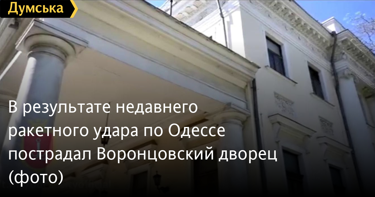 В результате одного из ракетных обстрелов Одессы пострадала одна из архитектурных жемчужин нашего города — Воронцовский дворец. Взрывной волной повреждены окна и элементы лепнины.