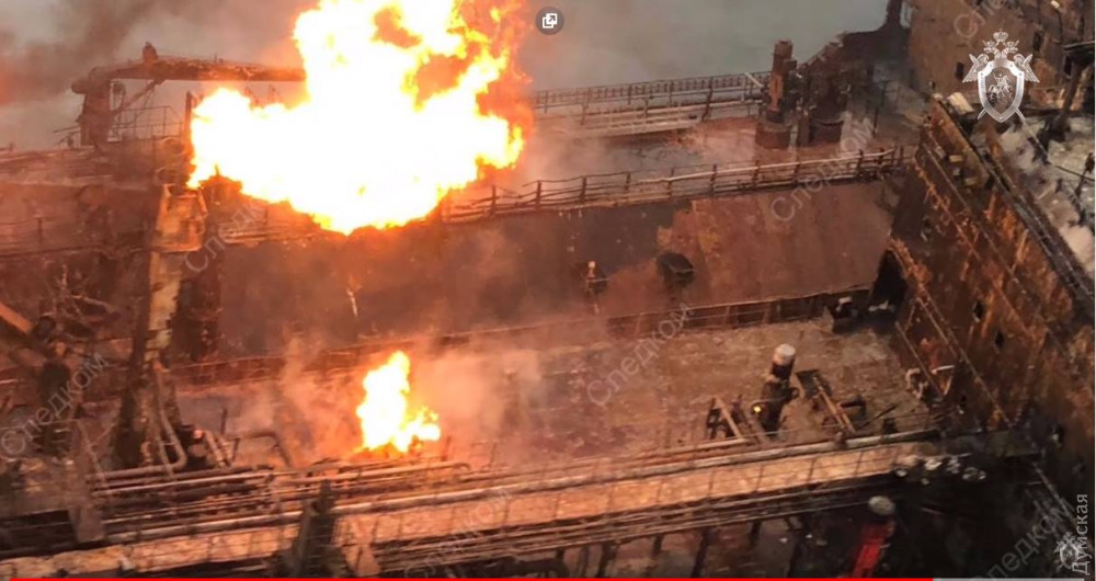 Пожар вспыхнул во время перегрузки топлива с одного судна на другое.