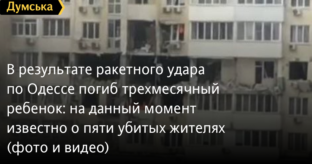 Пять человек, среди которых трехмесячный ребенок, погибли в результате ракетного удара, который нанесли российские нацисты по Одессе 23 апреля.