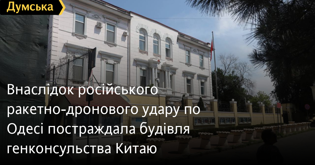 Будівля генерального консульства Китайської Народної Республіки постраждала внаслідок нічного ракетно-дронового удару, завданого російськими нацистами по Одесі.