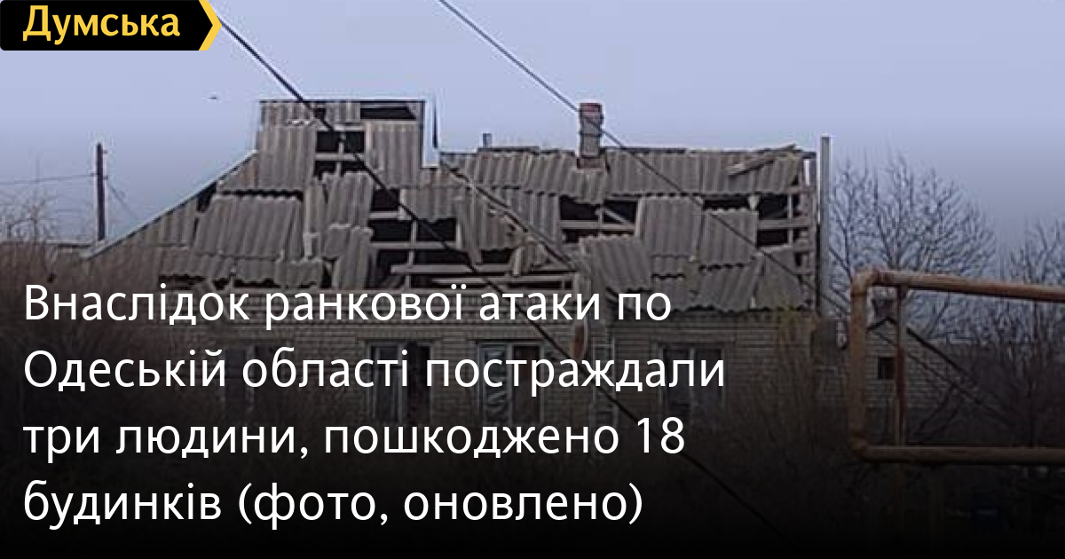 ОНОВЛЕНО о 10:23. У пресслужбі прокуратури Одеської області повідомили, що внаслідок атаки постраждали троє людей, зокрема 16-річний хлопець. Усі вони отримали легкі тілесні ушкодження.