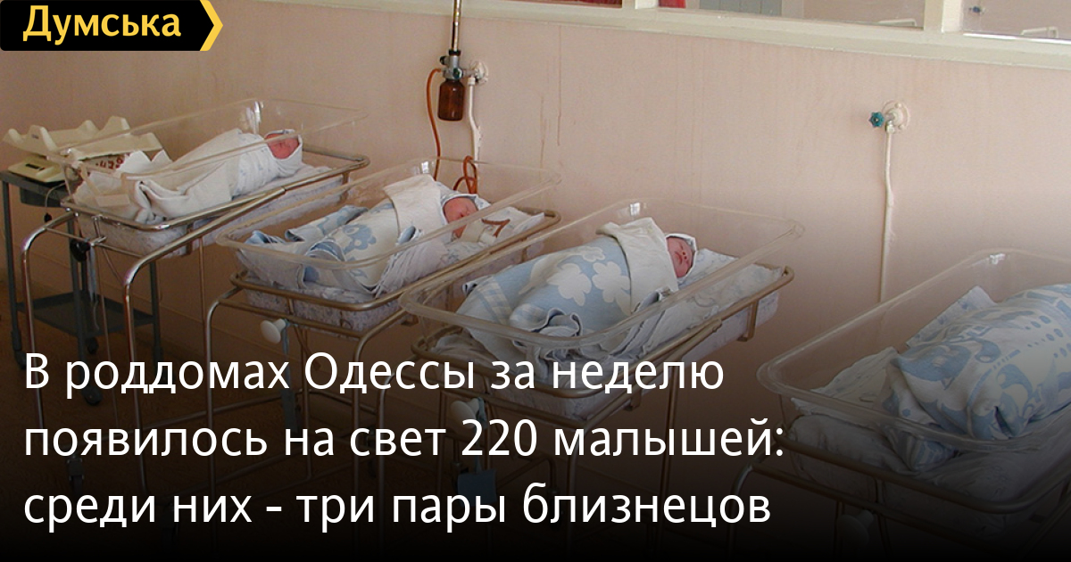 В роддомах Одессы за неделю появилось на свет 220 малышей: среди них - три пары близнецов220 новорожденных появилось на свет в роддомах Одессы на минувшей неделе. Как сообщили в горздраве, это на 28 детей больше, чем за предыдущий период. Девочек родилось немного больше, чем мальчиков — 112 против 108. В числе новоиспеченных одесситов — три пары близнецов. Наибольшее количество родов на минувшей неделе приняли медики городского роддома №7, где увидели свет 64 малыша. В настоящее время прием беременных, рожениц и родильниц ведут все пять городских родильных домов Одессы. СМЕРТЬ РОССИЙСКИМ ОККУПАНТАМ! Заметили ошибку? Выделяйте слова с ошибкой и нажимайте control-enter |