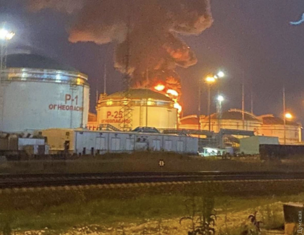 Як повідомляють очевидці, внаслідок цього на об'єкті почалася сильна пожежа, яку не можуть загасити досі. Горить резервуар, заповнений нафтопродуктами.