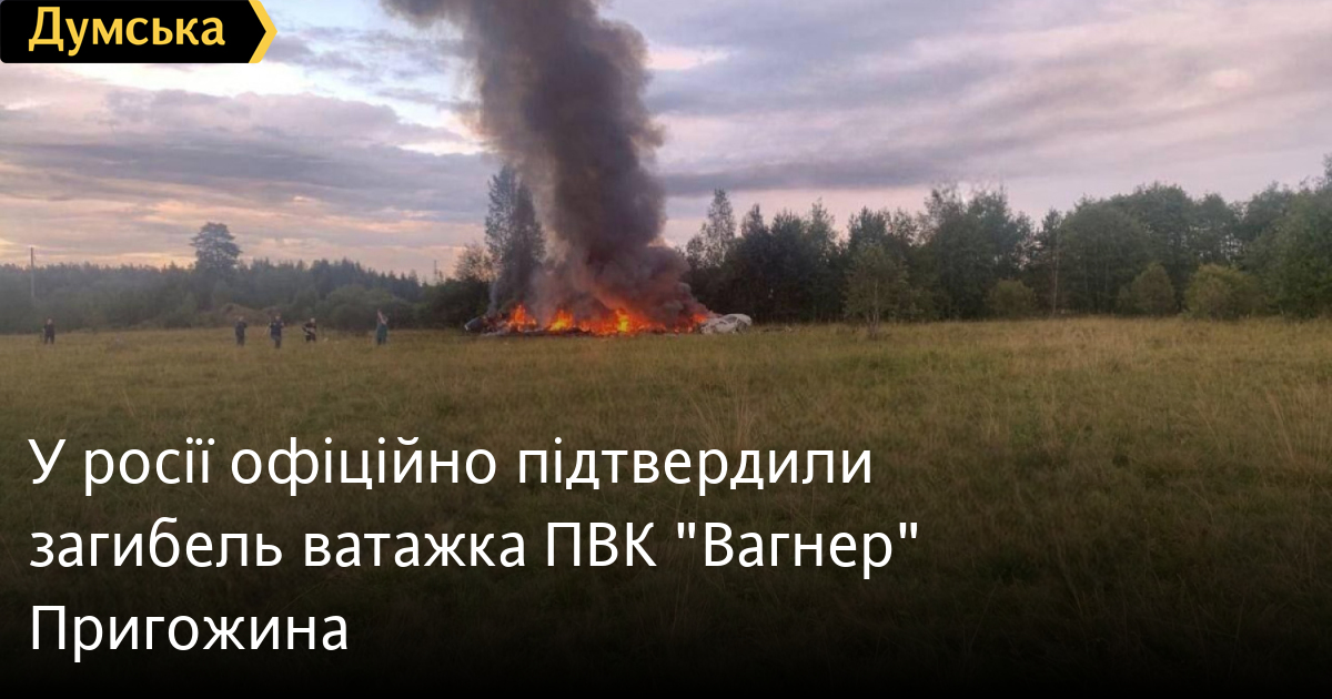 Загибель ватажка ПВК «Вагнер» Євгена Пригожина внаслідок падіння літака підтвердив слідчий комітет рф.