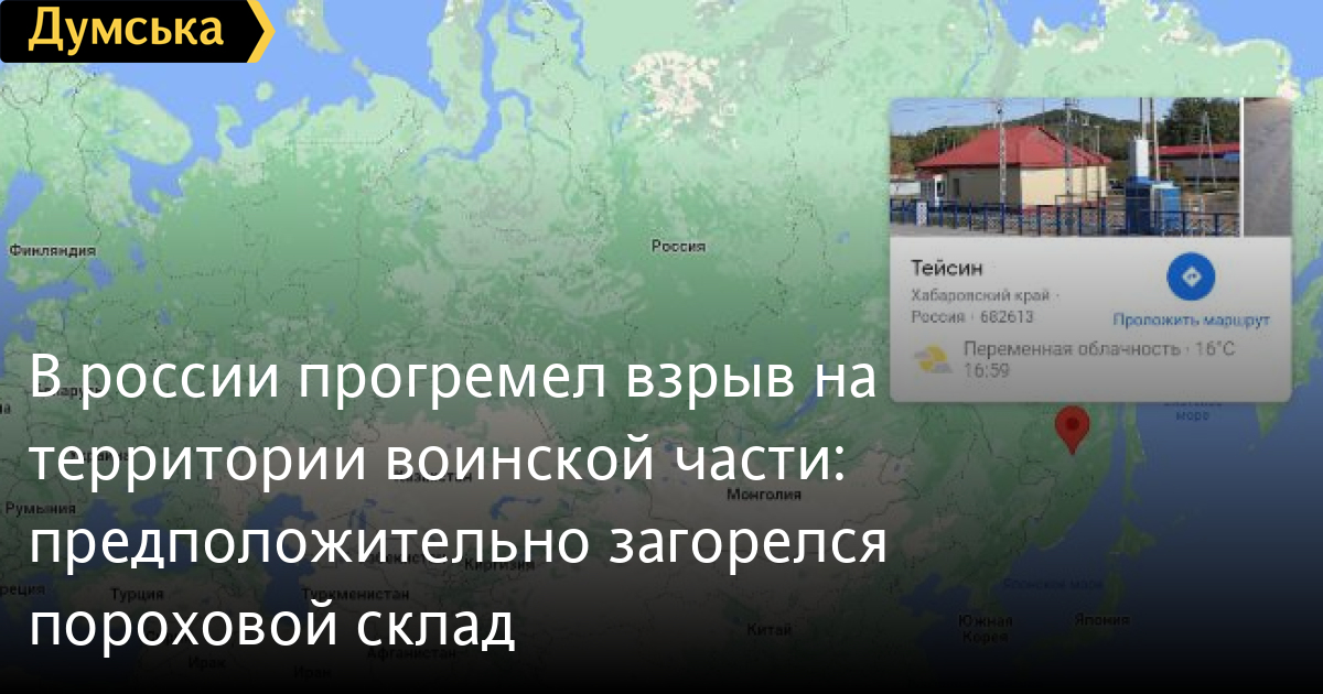 Взрыв на территории воинской части поселка Тейсин Амурского района Хабаровского края рф произошел предположительно утром 12 мая.