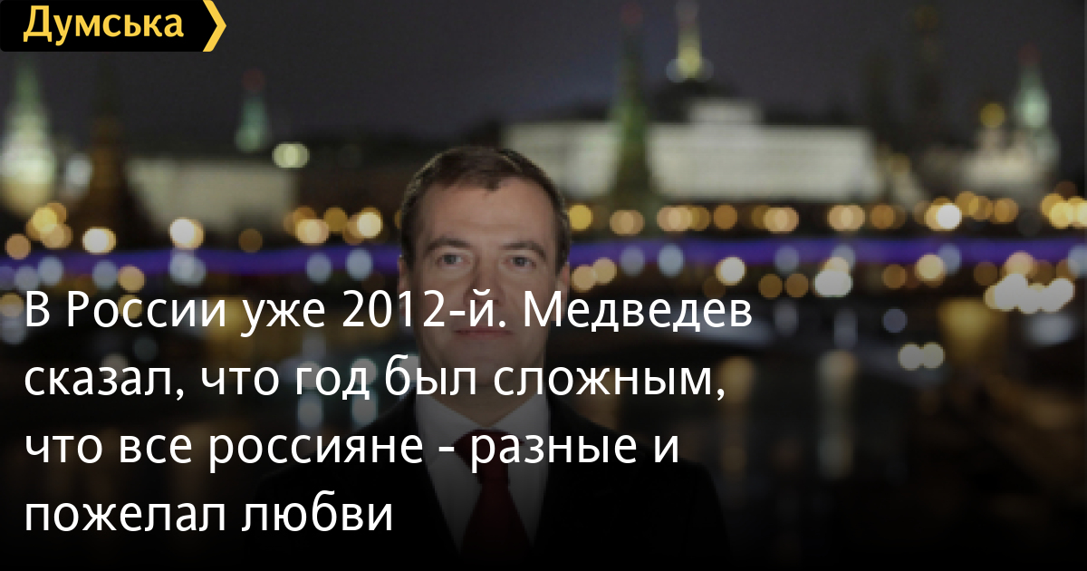 «Верьте в себя, а я верю в каждого из вас. И всё у нас получится! Счастья вам! С праздником! С новым, 2012 годом!» — заявил президент в новогоднем обращении.