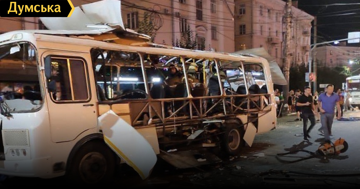 Взрыв в пассажирском автобусе прогремел вечером 12 августа на остановке в центре российского Воронежа. По данным «Интерфакса», пострадали 19 человек, одна женщина скончалась в больнице от полученных травм. Состояние троих оценивается как тяжелое, восемь человек — в состоянии средней степени тяжести. После взрыва автобус ПАЗ полностью сгорел. Источники агентства в службах транспортного надзора озвучили несколько предварительных версий случившегося. По одно из них — неисправность газового оборудования, установленного в автобусе кустарным способом. Другой источник сообщил, что газового оборудования в автобусе не было, он был дизельным. Эту информацию также подтвердили в городском управлении транспорта и перевозчик. По факту взрыва возбуждено уголовное дело об оказании услуг, не отвечающих требованиям безопасности. «Предварительно установлено, что в городе Воронеже на остановке общественного транспорта, недалеко от торгового центра на улице Кольцовской, во время посадки пассажиров произошел хлопок, в результате которого пассажиры получили травмы различной степени тяжести, автобус — серьезные механические повреждения», — сообщает пресс-служба следственного комитета. Продолжаются следственные действия. СМЕРТЬ РОСІЙСЬКИМ ОКУПАНТАМ! Помітили помилку? Виділяйте слова з помилкою та натискайте control-enter |
