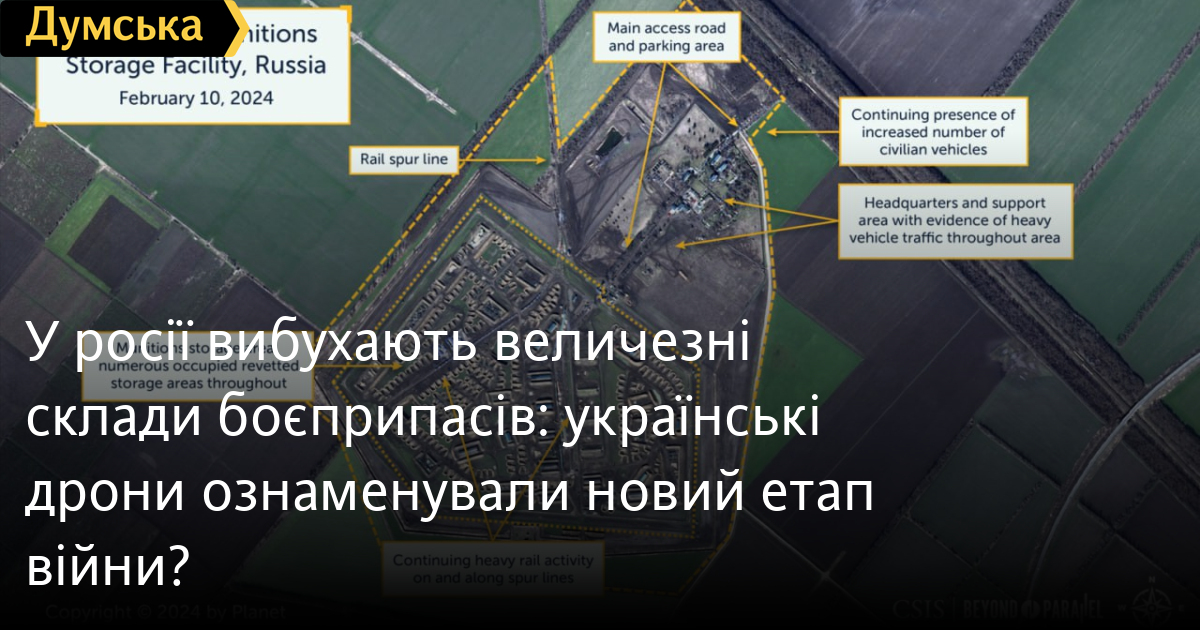 Після масованих ударів українських дронів-камікадзе по об'єктах російської нафтопереробної промисловості, новими цілями «довгої руки» української безпілотної авіації стали склади боєприпасів у центральній смузі рф.