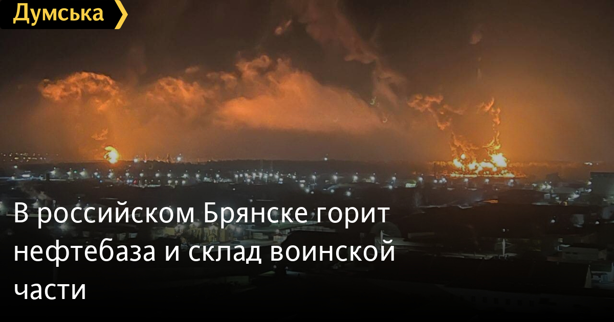 В российском Брянске, который находится примерно в 130 км от границы с Украиной, произошел пожар на территории нефтебазы. Предположительно, там горят резервуары с топливом.