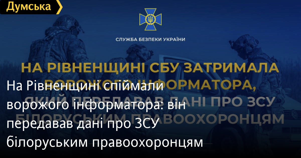 На Рівненщині співробітники Служби безпеки України спіймали ворожого інформатора.