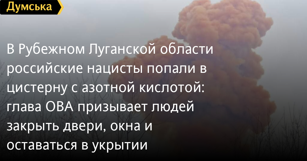 В Рубежном российские нацисты попали в цистерну с азотной кислотой. Об этом сообщает глава Луганской военной администрации Сергей Гайдай.