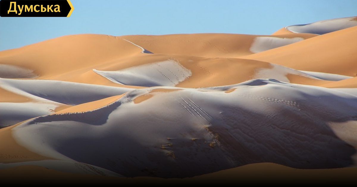 Сообщается, что снег в песчаном регионе выпадает пятый раз за 42 года. Предыдущие случаи фиксировали в 1979, 2016, 2018 и 2021 годах.