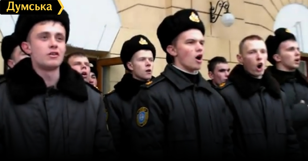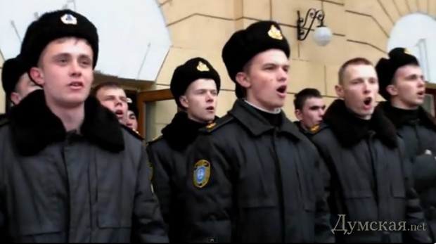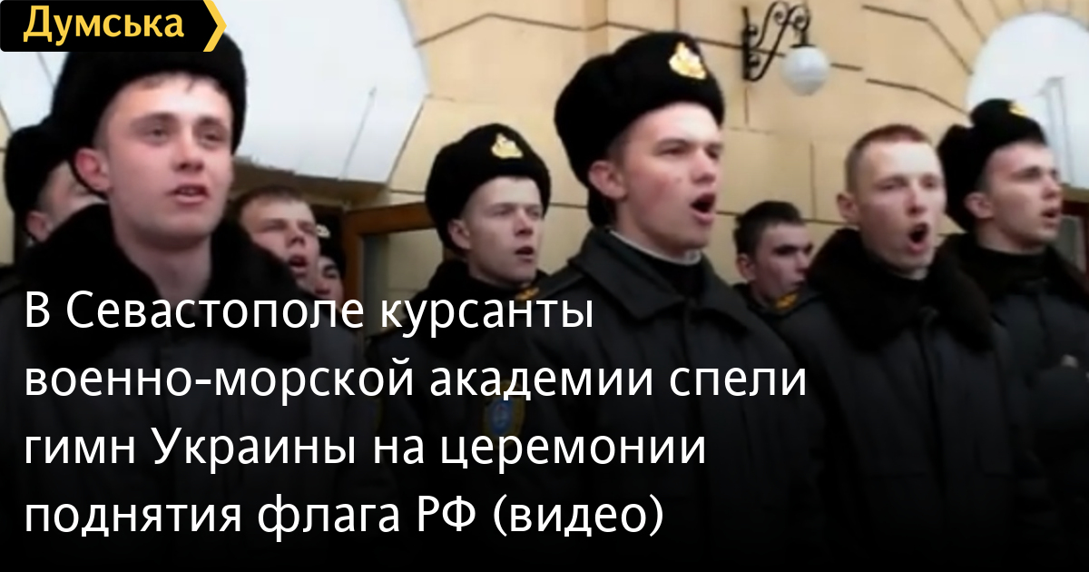 В военно-морской академии им П.С. Нахимова в Севастополе во время построения всего состава для смены флага с украинского на российский, группа курсантов вышла и начала петь гимн Украины.