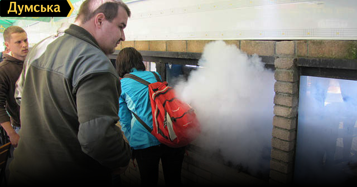 Молодежь из числа прибывших на поддержку севастопольских арендаторов дельфинария попыталась выбить доску, которой было закрыто окно. Однако из помещения их начали отгонять газом из огнетушителя.