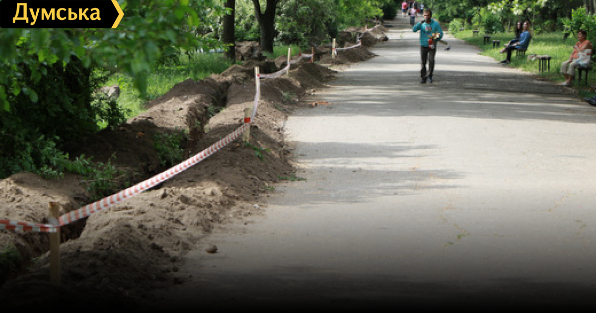 Капремонт начался с рытья траншей для закладки сетей наружного освещения парка, сообщает мэрия. После того, как будет проложена новая кабельная канализация, здесь установят 296 новых опор со светильниками.