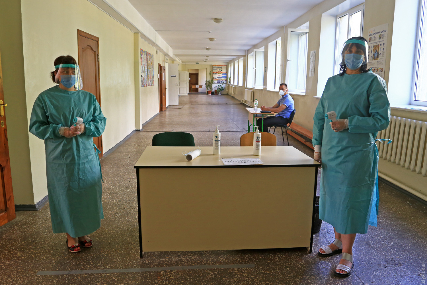 Первый день ВНО в Одессе: меряют температуру и рассаживают с соблюдением дистанции, а полиция стережет сейф с заданиямиВ Украине стартовала основная сессия внешнего независимого оценивания. Первым предметом, знание которого проверяют у выпускников школ, стала математика. Всего по стране в тестировании участвует около 190 тысяч будущих абитуриентов, в Одессе — почти пять тысяч. Корреспондент «Думской» наблюдает за тем, как это происходит в общеобразовательной школе I-III ступеней 8, что на улице Бреуса. Сюда пришло примерно 200 недавних школьников. Запускать в здание учебного заведения их начали в 9:45. На входе стояли два строгих медицинских работника в халатах, масках и прозрачных шлемах, которые измеряли у детей температуру и смотрели, есть ли внешние признаки заболевания. Осмотр занял около получаса. Самая большая температура была у одного парня — плюс 36,9 (в пределах нормы). В итоге никого не завернули. Предприняты и другие меры безопасности. Так, по словам уполномоченного регионального центра оценивания качества образования Тараса Мандзия, расстояние между партами (за каждой сидит один человек) увеличили до 1,2 м. В коридоре школы дежурит полицейский, который следит, чтобы внутрь не заходили посторонние (прессу тоже не пускают, даже на пару минут). Еще один правоохранитель стережет опечатанный сейф с заданиями: его открывают, только когда все тестируемые уселись за парты. Результаты ВНО по математике станут известны до 17 июля. Фото Сергея Смоленцева СМЕРТЬ РОССИЙСКИМ ОККУПАНТАМ! Заметили ошибку? Выделяйте слова с ошибкой и нажимайте control-enter |