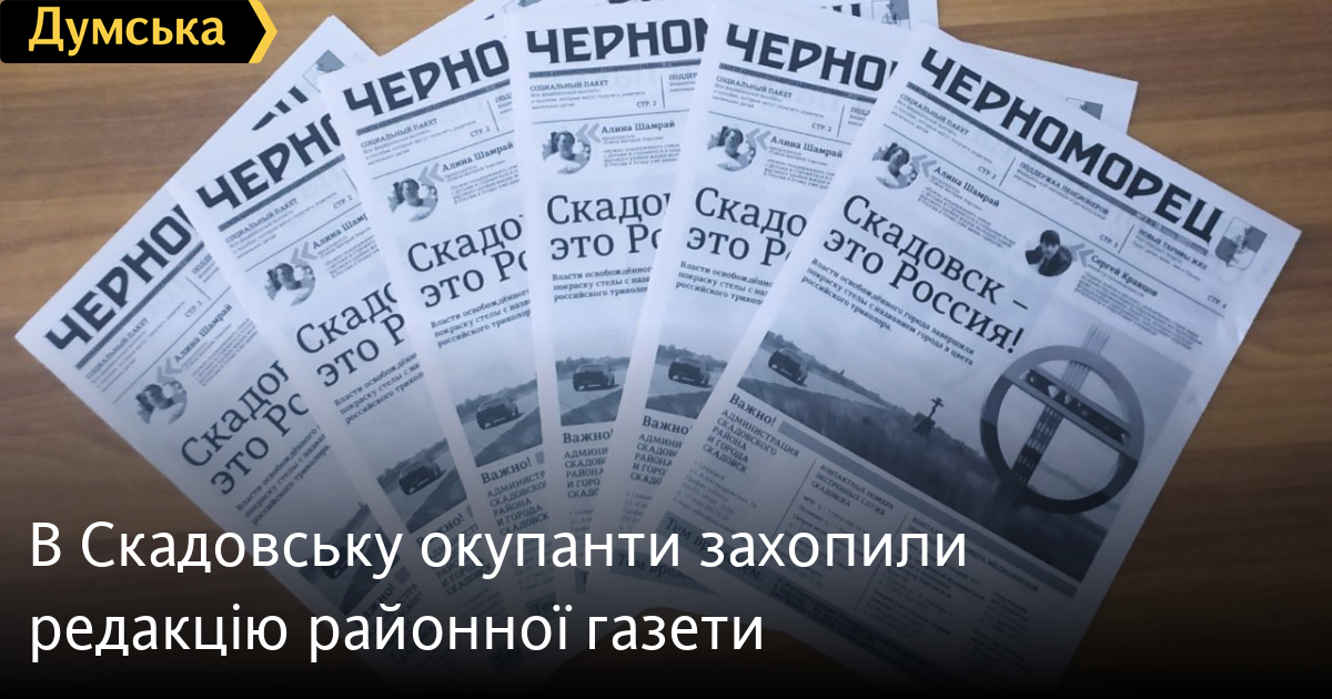 У місті Скадовськ Херсонської області російські окупанти захопили редакцію районної газети «Чорноморець» по вулиці Олександрівській.