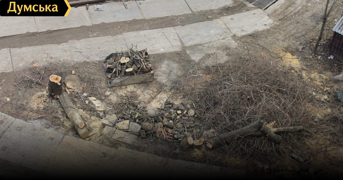 В сквере Жанны Лябурб под Тещиным мостом, который сейчас огражден под предлогом ремонта сооружения (на самом деле, там планировали строить автосалон, но процесс застопорился), массово рубят деревья.