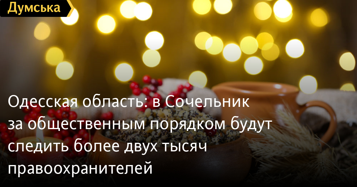«В Сочельник праздничные богослужения запланированы в 472 культовых сооружениях Одессы и области. Чтобы люди смогли спокойно отпраздновать один из главных христианских праздников — Рождество Христово, разработан комплекс мер по обеспечению правопорядка и общественной безопасности. В их реализации примут участие более двух тысяч правоохранителей», — говорится в сообщении.