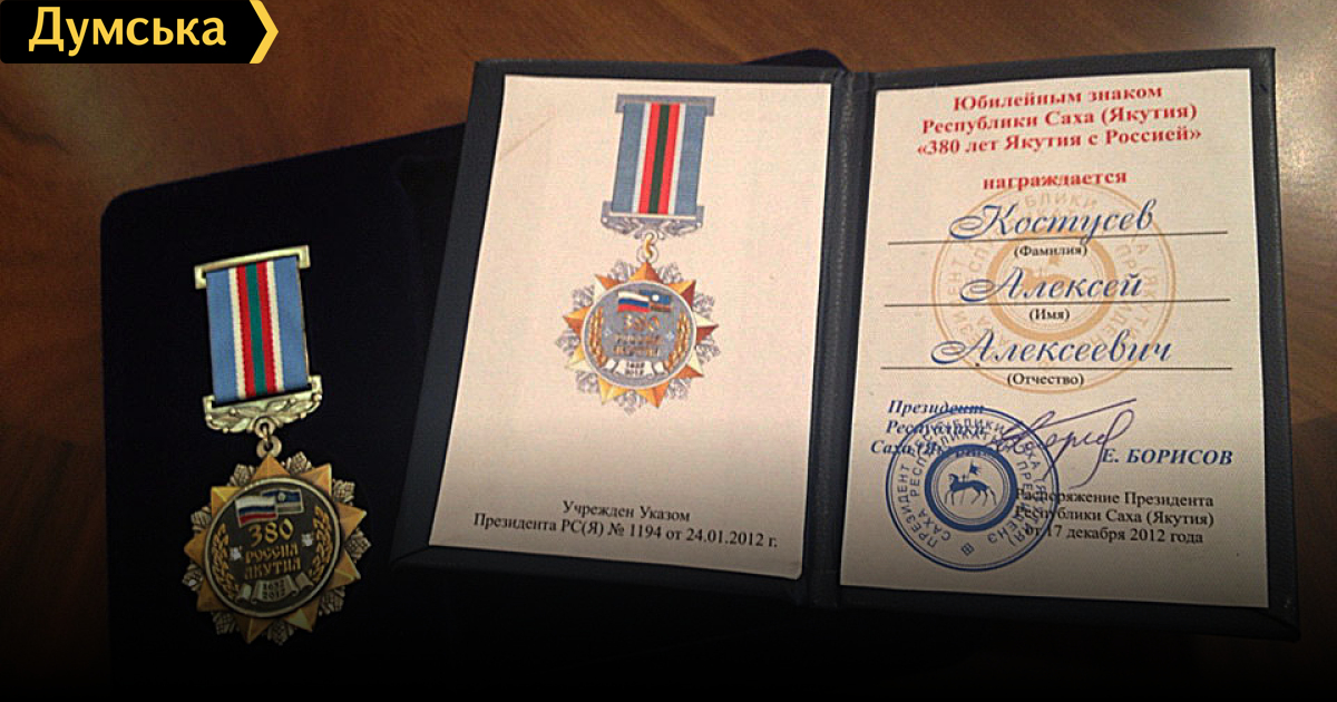 В администрации президента Республики Саха даже не подозревали о существовании такого гражданина Украины, как Алексей Алексеевич Костусев. И уж тем более не награждали его ни орденом, ни медалью, ни почетным знаком.