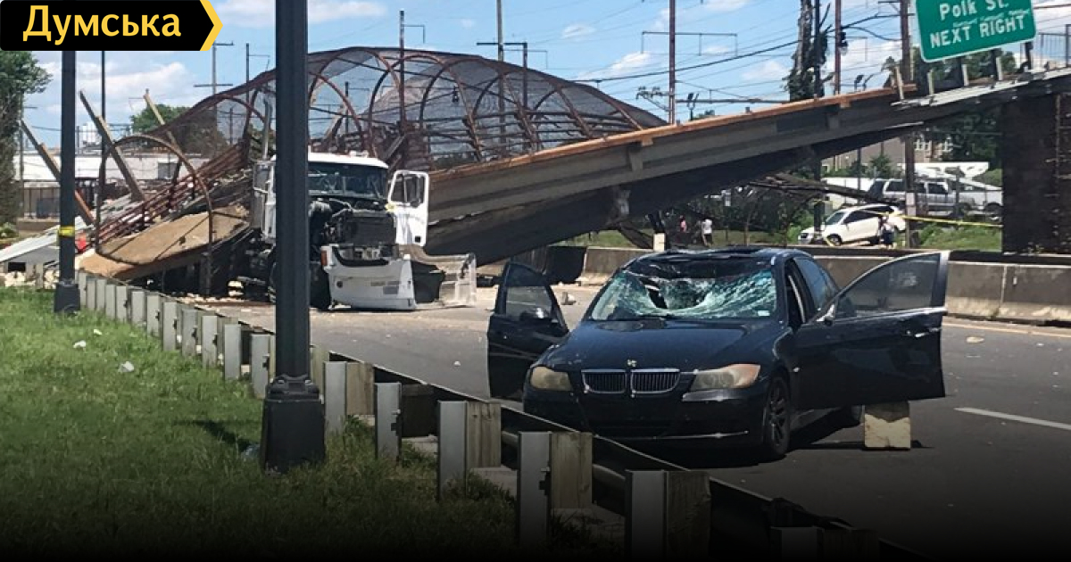 По меньшей мере, шесть человек пострадало в результате обрушения моста на северо-востоке Вашингтона в США. Об этом сообщил Департамент пожарной службы и экстренной медпомощи округа Колумбия. Как стало известно, рухнул мост I-295 в районе Полк-стрит. Массивная конструкция упала на межштатную автомагистраль 295. Четверых потерпевших забрали в больницу. По предварительным данным, серьезных травм никто не получил. Под обломками оказалось несколько машин, как минимум, один автомобиль получил повреждения. По данным полиции, было заблокировано движение в обе стороны по шоссе Анакостия, на дороге образовались пробки до шести километров в длину. Отрезок трассы обещают открыть до конца дня 24 июня, его будут до вечера расчищать от бетона и стали. Причины ЧП выясняются, по факту происшествия начато расследование. Предположительно, в мост въехал самосвал, его задняя часть могла под ним не поместиться и застрять. После этого от конструкции оторвалась часть и упала вниз. Также из грузовика на проезжую часть едва не вытекло дизельное топливо, команда химзащиты предотвратила утечку. Водитель грузовика тоже пострадал. СМЕРТЬ РОСІЙСЬКИМ ОКУПАНТАМ! Помітили помилку? Виділяйте слова з помилкою та натискайте control-enter Новини по цій темі: 12 січня 2022: Харьковские станции метро ожидает масштабная проверка: в вестибюле подземки на площади Конституции рухнул потолок (фото) 8 січня 2022: В Одессе из офиса фирмы выкрали сейф с внушительной суммой денег, золотом и пистолетом 8 січня 2022: Российский грузовой самолет сгорел в аэропорту Ханчжоу 6 січня 2022: В Тернопольской области перевернулась автоцистерна с бензином: спасатели эвакуировали жителей близлежащих домов из зоны ЧП |