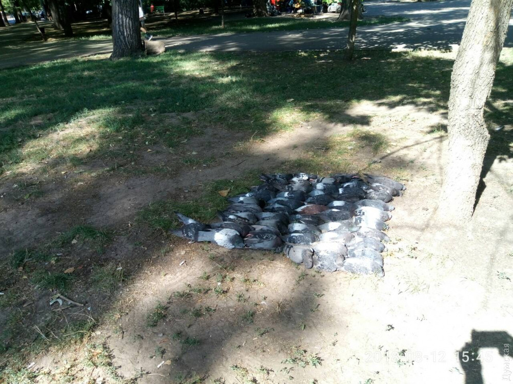 Несколько десятков мертвых птиц были аккуратно сложены под одним из деревьев.